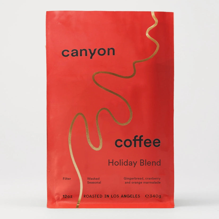 brown coffee bag with gold text