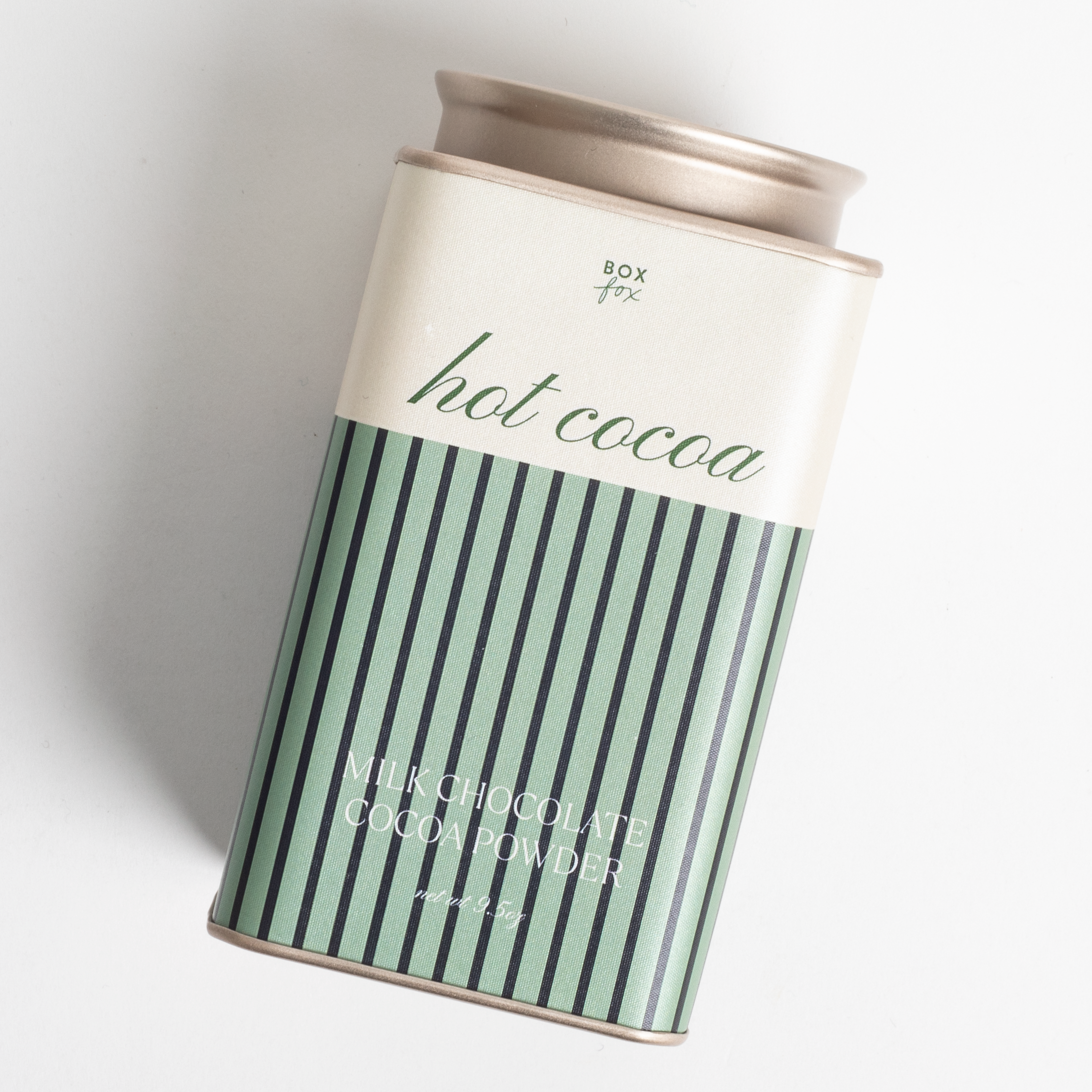 The latest image displays a minimalist and elegant box of "Hot Cocoa" with a peppermint flavor by "Grand Provisions." The packaging utilizes a deep green background with gold geometric circular patterns, creating a sophisticated and refined look. The typography is clean, and the layout feels premium, suggesting this product might be targeted toward a more upscale market or intended as a giftable item.