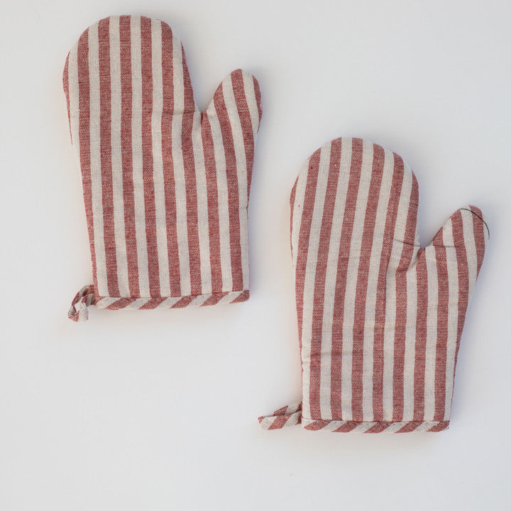 Green and white checkered towels hanging on a kitchen cabinet.